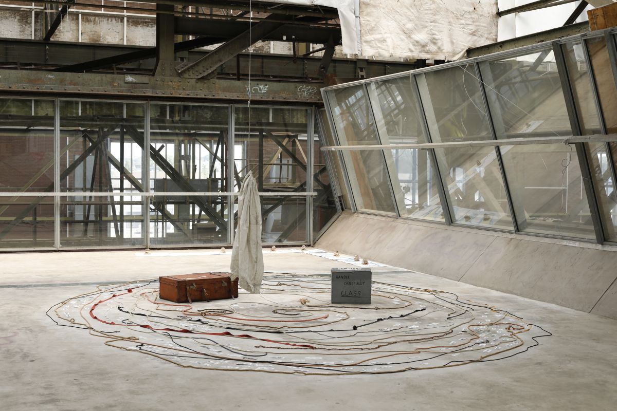 In een installatie probeer ik altijd een persoonlijke invalshoek te verbinden met historische en ruimtelijke aspecten van de locatie. In dit geval zijn er inspirerende verbanden: mijn opa heeft als technisch tekenaar gewerkt bij de NDSM, mijn vader heeft als machinist gevaren bij de koopvaardij. Wat neem je mee als je maanden op zee bent? Van mijn schoonfamilie zijn 3 tantes met hun gezin rond 1950 vertrokken naar Canada en Australië, wat pak je in als je een nieuw bestaan hoopt op te bouwen? Ik stel me de bagage voor, opgestapeld tussen die van duizenden anderen in Loods 6. En wat als je je nu inscheept, voor een tocht tussen hoop en vrees, misschien alleen je smartphone? Sta je elke keer aan de reling als er land in zicht is?