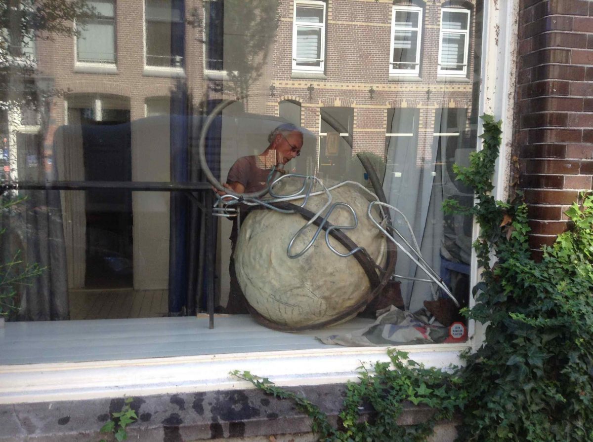 In beeld gebracht met gevonden objecten uit Amsterdam en natuurlijke materialen als klei, gips, hout, karton, ijzer en papier-maché.