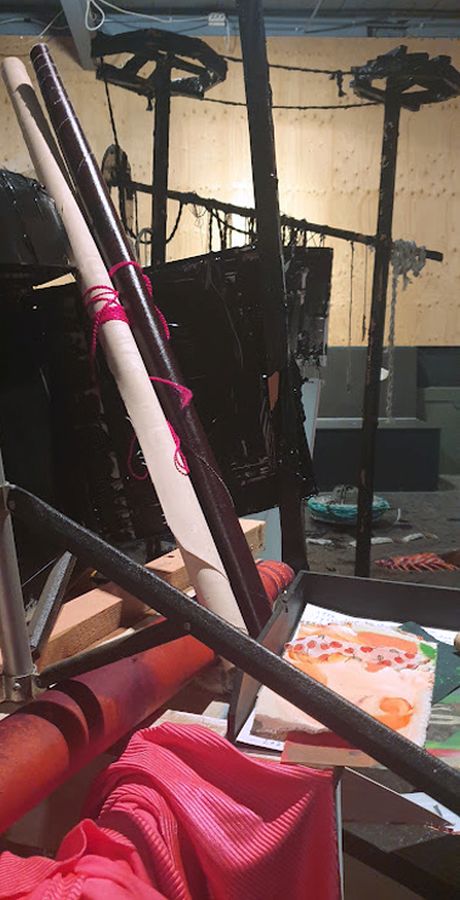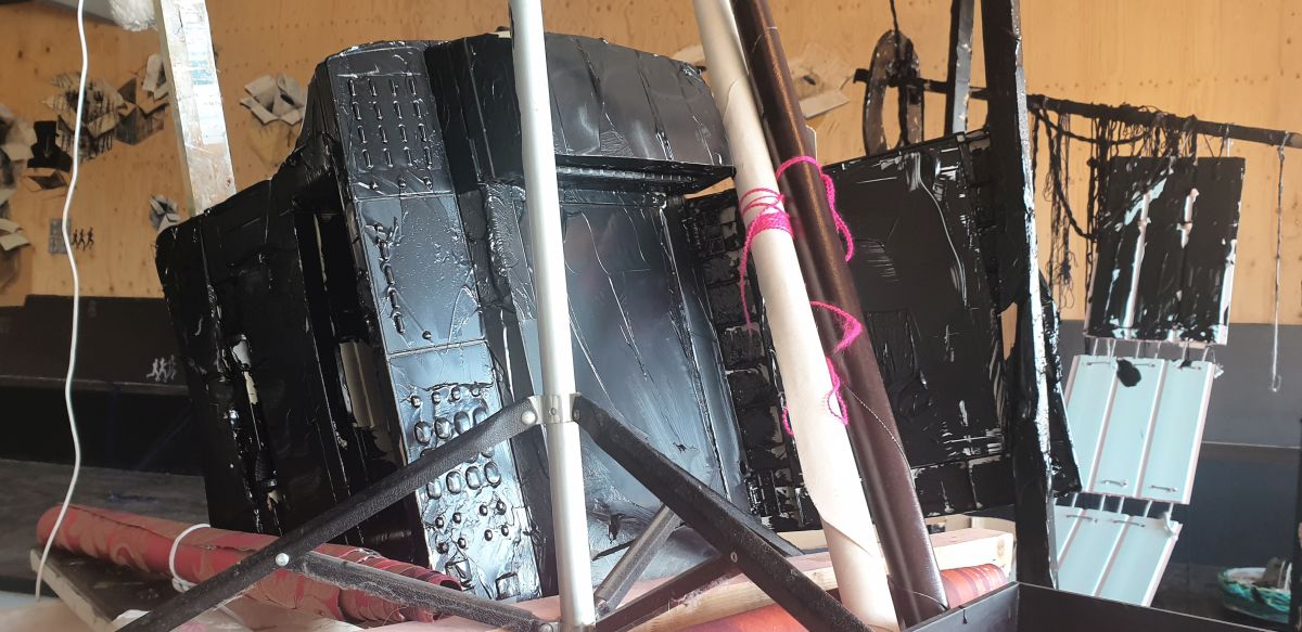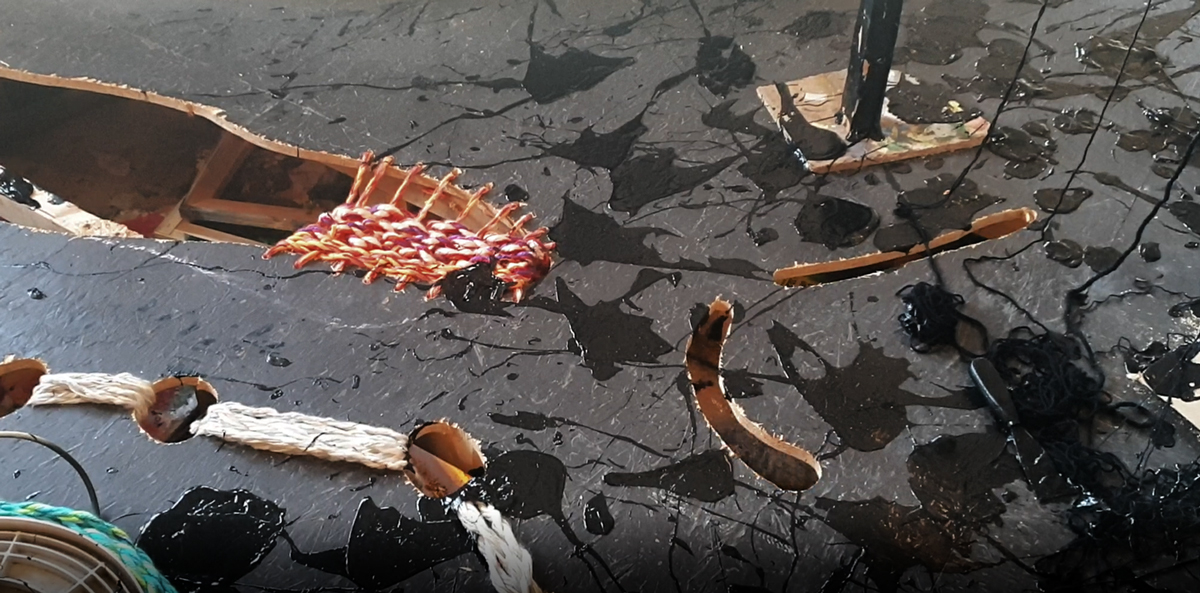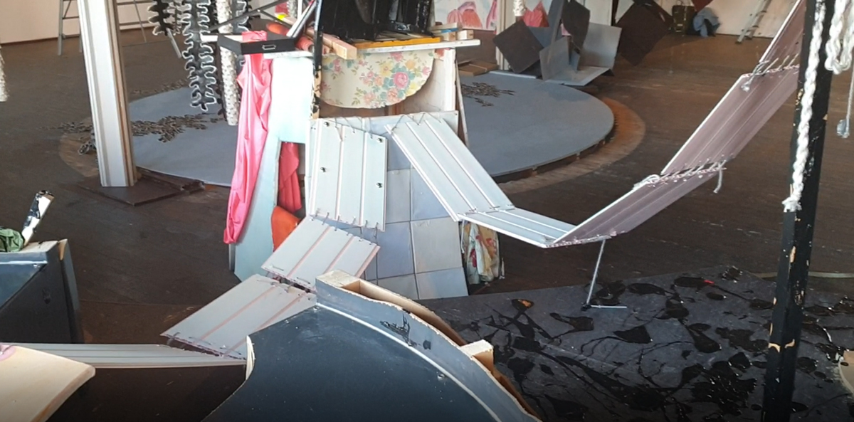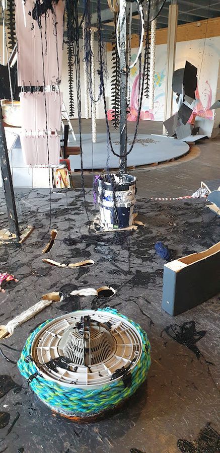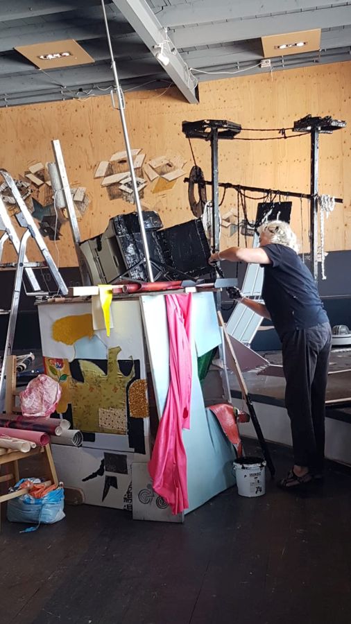 Verhuizen is een pas op de plaats, de tijd stopt. Het biedt de mogelijkheid voor een nieuw standpunt, met de blik op de toekomst. Verhuizen is ook een terugblik naar het verleden: de tijd gaat door je handen. Marja van Putten maakt een installatie die de inrichting van de Kunsthal opbreekt met weggegooide materialen van haar eigen atelierverhuizing. Zij combineert in haar schilderijen verf en textiel. In deze installatie naait zij de wegwerp onderdelen aan elkaar en besmeurt deze met zwarte verf.