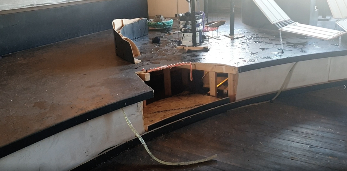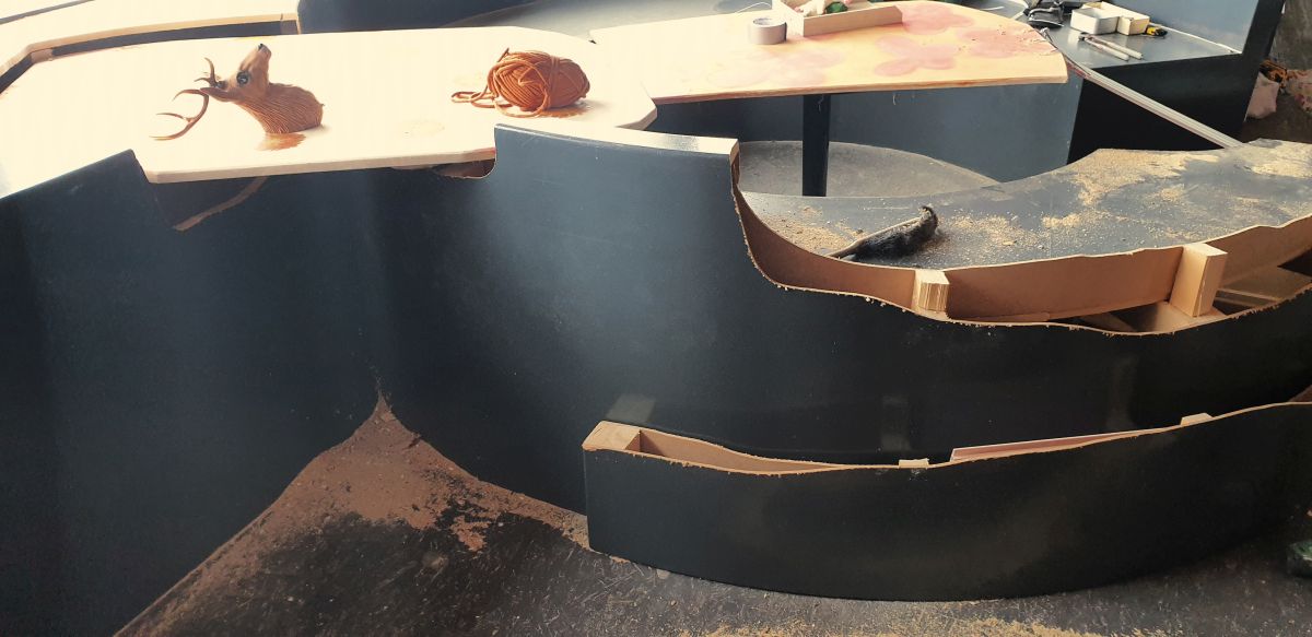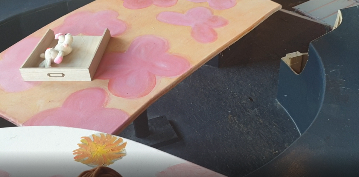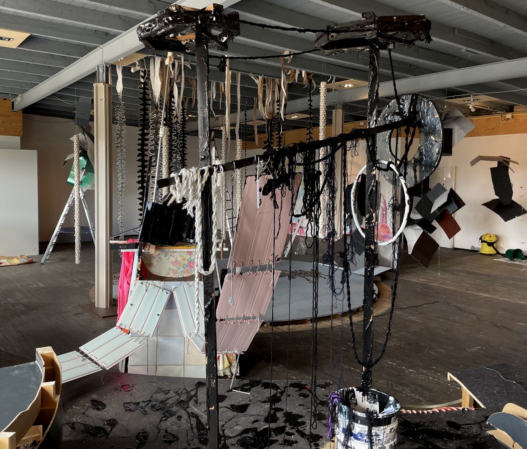 Verhuizen is een pas op de plaats, de tijd stopt. Het biedt de mogelijkheid voor een nieuw standpunt, met de blik op de toekomst. Verhuizen is ook een terugblik naar het verleden: de tijd gaat door je handen. Marja van Putten maakt een installatie die de inrichting van de Kunsthal opbreekt met weggegooide materialen van haar eigen atelierverhuizing. Zij combineert in haar schilderijen verf en textiel. In deze installatie naait zij de wegwerp onderdelen aan elkaar en besmeurt deze met zwarte verf.